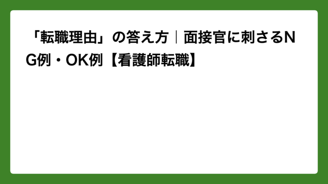転職 「転職理由」の答え方|面接官に刺さるNG例・OK例【看護師転職】 2026年4月11日 ナナ 「なぜ転職しようと思ったんですか?」 面接で必ずといっていいほど聞かれる、この質問。実は面接官にとって、転職理由は「この人が長く働け …