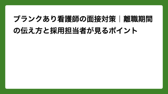 転職 ブランクあり看護師の面接対策|離職期間の伝え方と採用担当者が見るポイント 2026年4月11日 ナナ 「ブランクがあって、面接で何を聞かれるか不安…」「離職期間をどう説明すればいいの?」――そんな悩みを抱える看護師さんへ。 現役の採用 …