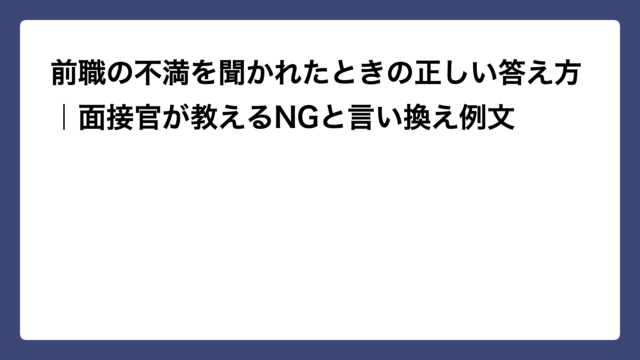 転職 前職の不満を聞かれたときの正しい答え方|面接官が教えるNGと言い換え例文 2026年4月11日 ナナ 「前職の不満を正直に話していいの?」「転職理由を聞かれたとき、本音を言うと印象が悪くなる?」――面接でこの質問が来るたびに、多くの看護師さ …