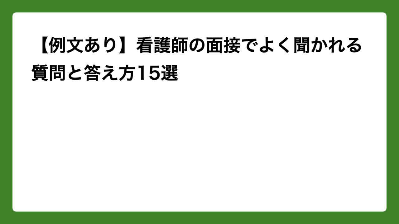 看護師転職の面接では、ある程度聞かれる質問のパターンが決まっています。事前に答えを準備しておくだけで、本番の緊張感は大きく変わります。
