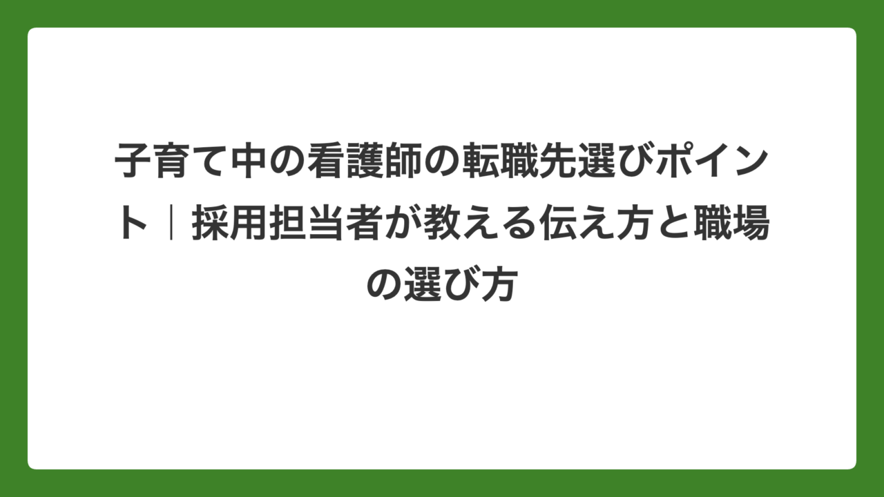 子育て中の看護師の転職先選びポイント|採用担当者が教える伝え方と職場の選び方