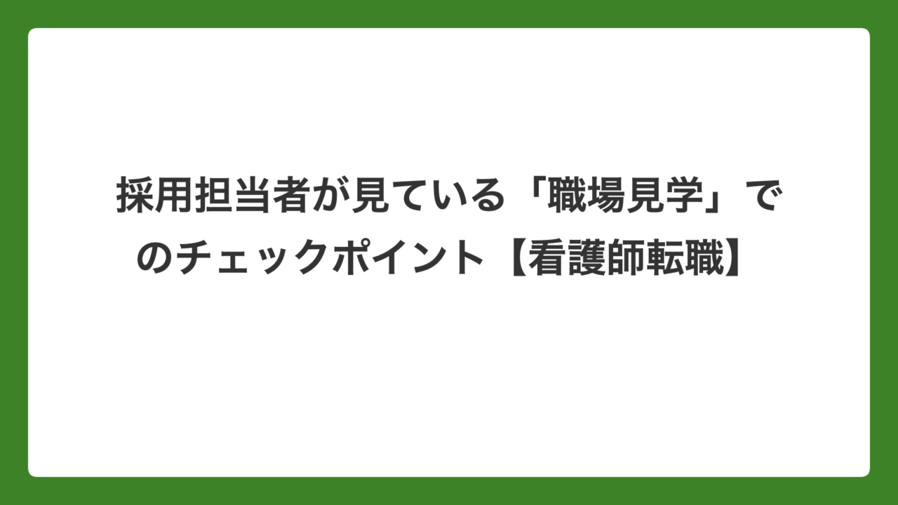 採用担当者が見ている「職場見学」でのチェックポイント【看護師転職】