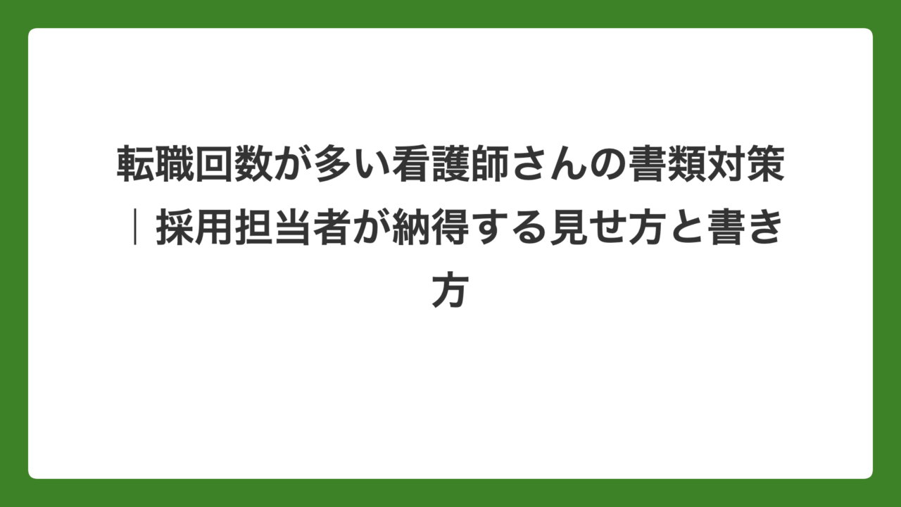 転職回数が多い看護師さんの書類対策|採用担当者が納得する見せ方と書き方