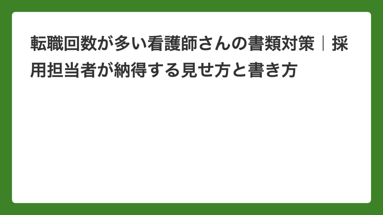 採用担当者が最も評価するのは、「転職の多さ」ではなく、「転職のたびにスキルや経験を積み上げてきた実績」です。急性期→回復期→訪問看護のように、キャリアの変遷を「成長の軌跡」として見せられると、採用担当者の目に止まりやすくなります。